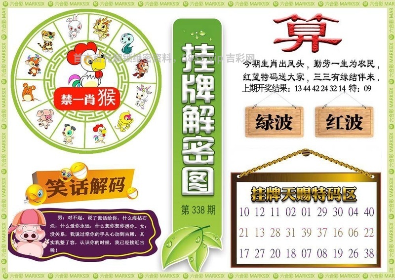 | 338期:今期鸡狗兔出特,马驴尽食江南票:开狗08准。 ①鸡狗兔猪猴 ②合双+大数 本人取特都是有思路可寻,对错看天意,喷狗绕道 |